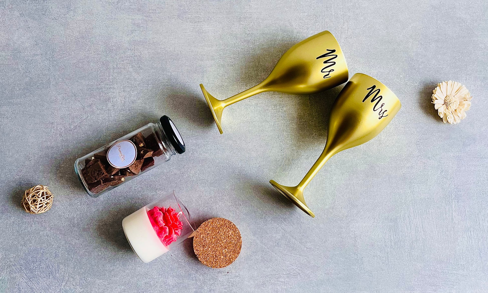 Set the mood for love with this beautifully curated hamper. Share a drink in the elegant wine glasses, let the romantic candles create a warm glow, and indulge in rich chocolates together. Perfect for anniversaries, date nights, or simply celebrating love with someone special.