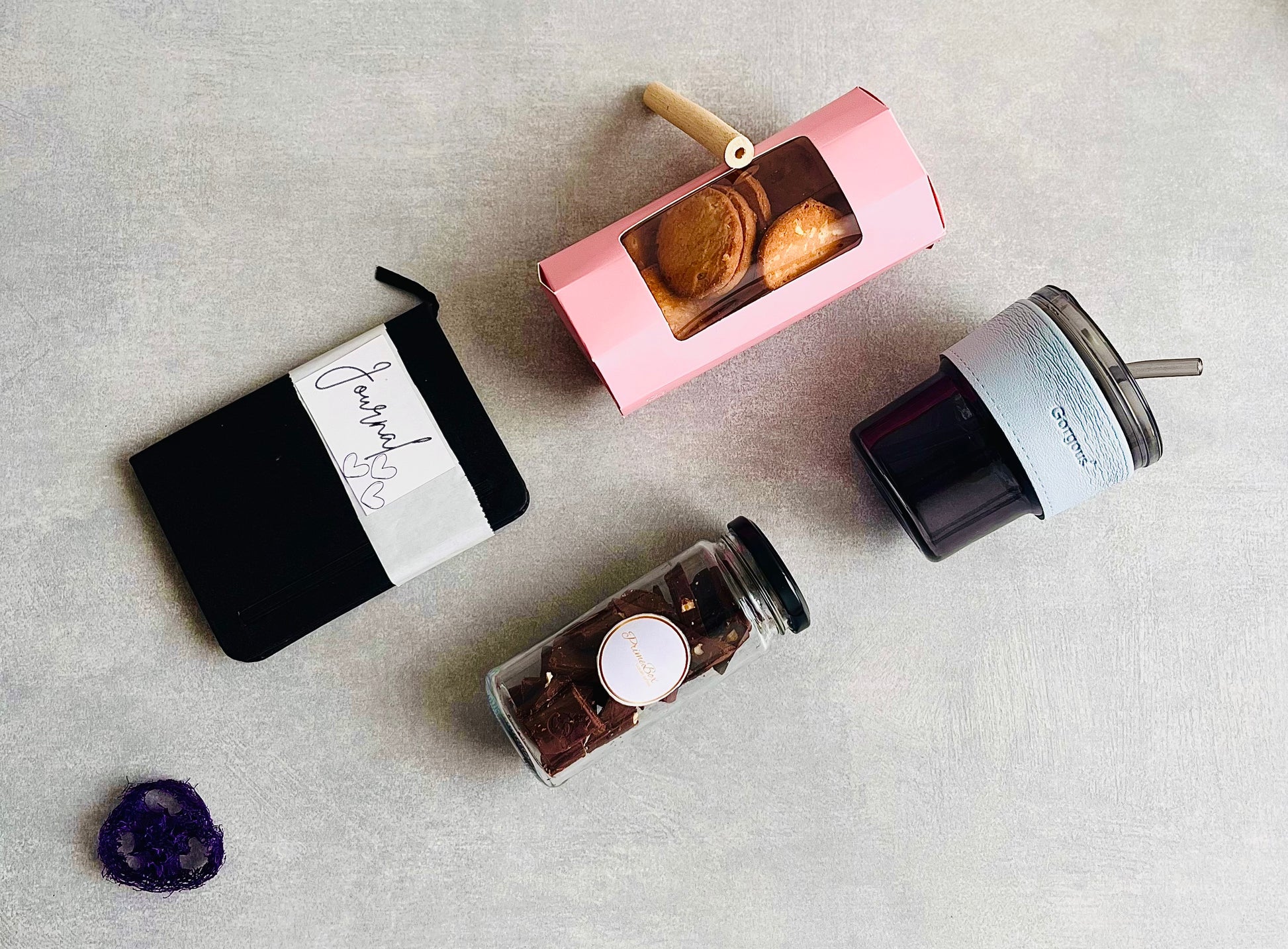 A hamper crafted for thoughtful moments and sweet indulgence. Jot down ideas, dreams, or daily reflections in the elegant journal, sip in style with the glass sipper, and treat yourself to rich chocolates and crunchy cookies. Perfect for birthdays, festive surprises, or corporate gifting with a personal touch.