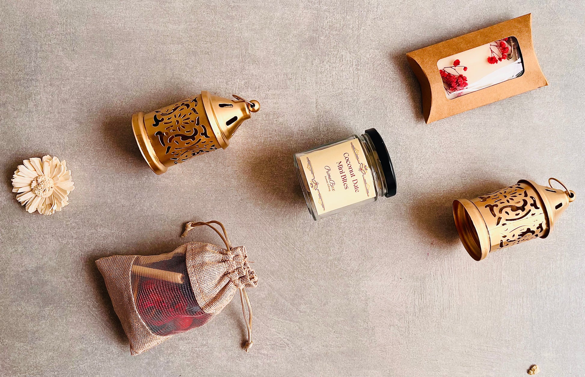 Create a warm and inviting ambiance with this elegant hamper. Fill the air with soothing fragrance from the potpourri and wax sachet, light up spaces with the charming lanterns, and enjoy the natural sweetness of date bites. A perfect gift for festive occasions, housewarmings, or thoughtful gestures of love and care.