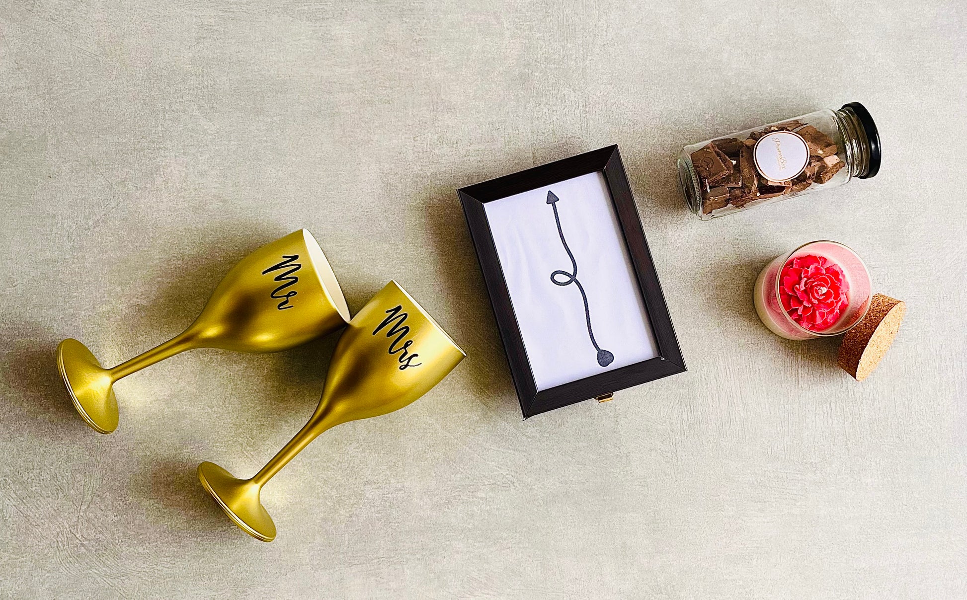 Set the mood for a cozy, romantic evening with this thoughtfully curated hamper. Share a toast in elegant wine glasses, light the romantic candles to create a warm ambiance, indulge in rich chocolates, and preserve a cherished memory in the stylish frame. Perfect for anniversaries, Valentine’s Day, or a heartfelt surprise for a loved one.